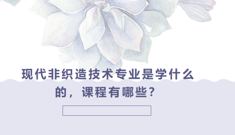现代非织造技术专业主要学习课程有《非织造设备与工艺》、《非织造布后整理技术》、《高分子材料与纺丝技术》、《非织造企业管理》、《复合材料基础》、《非织造材料经营与贸易》等